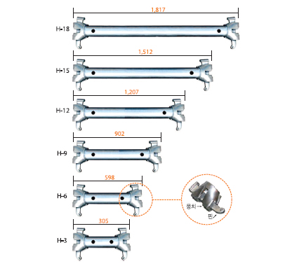 - 수평재(Ø42.7)는 안전성과 더불어 수직재와의 간격을 쉽게 조절할 수