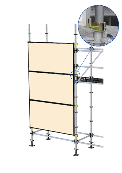 - 시스템 비계구조물의 외부 면에 설치함으로써 공사소음이 외부로 전파되는 것을 방지하고 공사현장의 비산먼지를 차단할 수 있다.